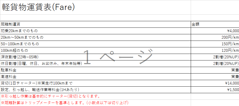 ※基本的に手積みで、クレーンが必要な物品等、大型のものに関しては運べない可能性があります。